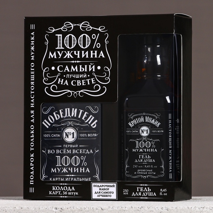 Подарочный набор «100% мужчина»: гель для душа виски 250 мл и игральные карты, Чистое счастье