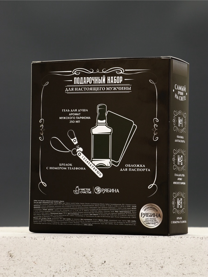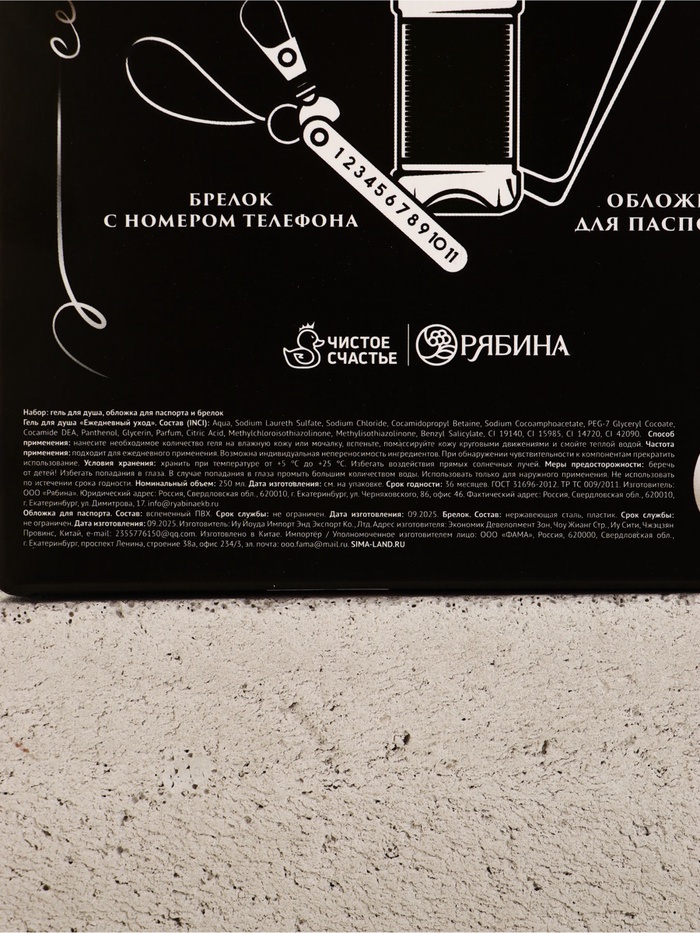 • Составляющие набора: Гель для душа, Обложка для паспорта, Брелок