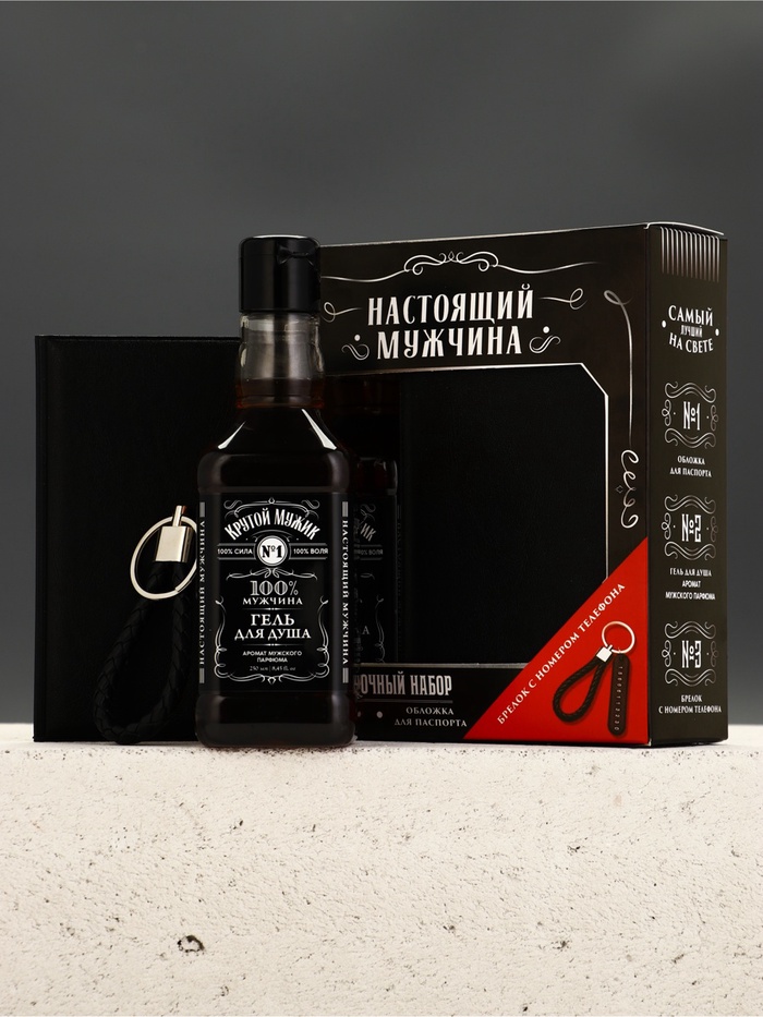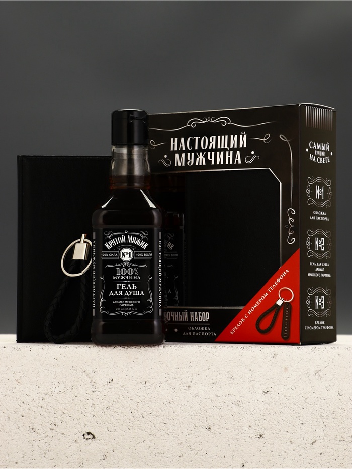 Подарочный набор «Настоящий мужчина», гель для душа, обложка для паспорта, брелок, Чистое счастье