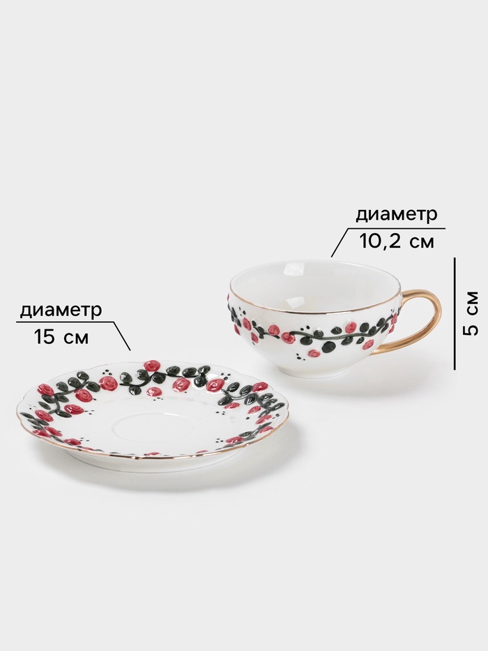 - Идеальный размер: Чашка объемом 180 мл и блюдце диаметром 15 см создают гармоничную композицию для вашего чая.