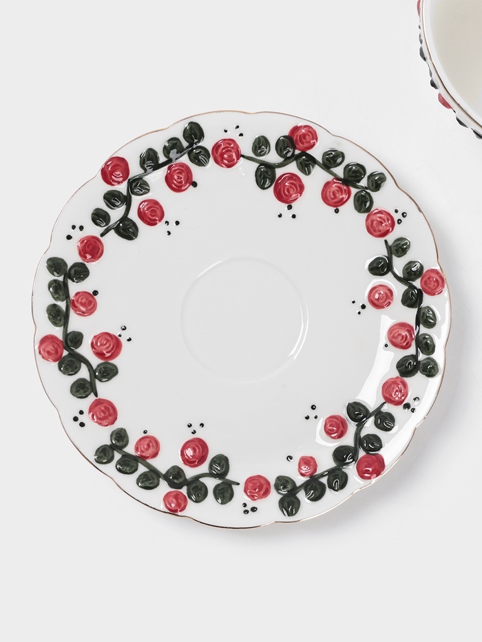 - Изящный дизайн: Белая керамика с нежным цветочным рисунком и легким рельефом придает паре утонченный вид.