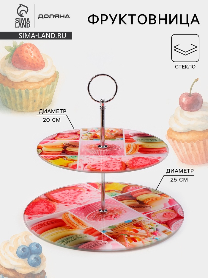 Оригинальное 2-х ярусное блюдо изготовлено из качественного и прочного стекла. Блюдо можно использовать для подачи фруктов и различных кондитерских изделий. Благодаря красочному дизайну эта посуда станет чудесным украшением праздничного стола.