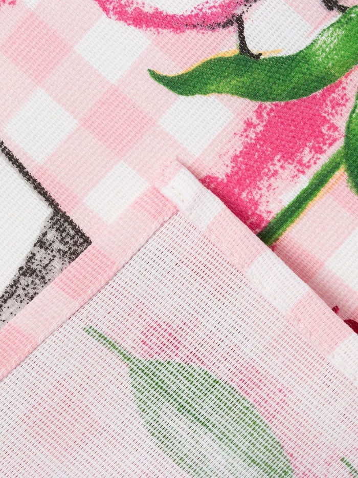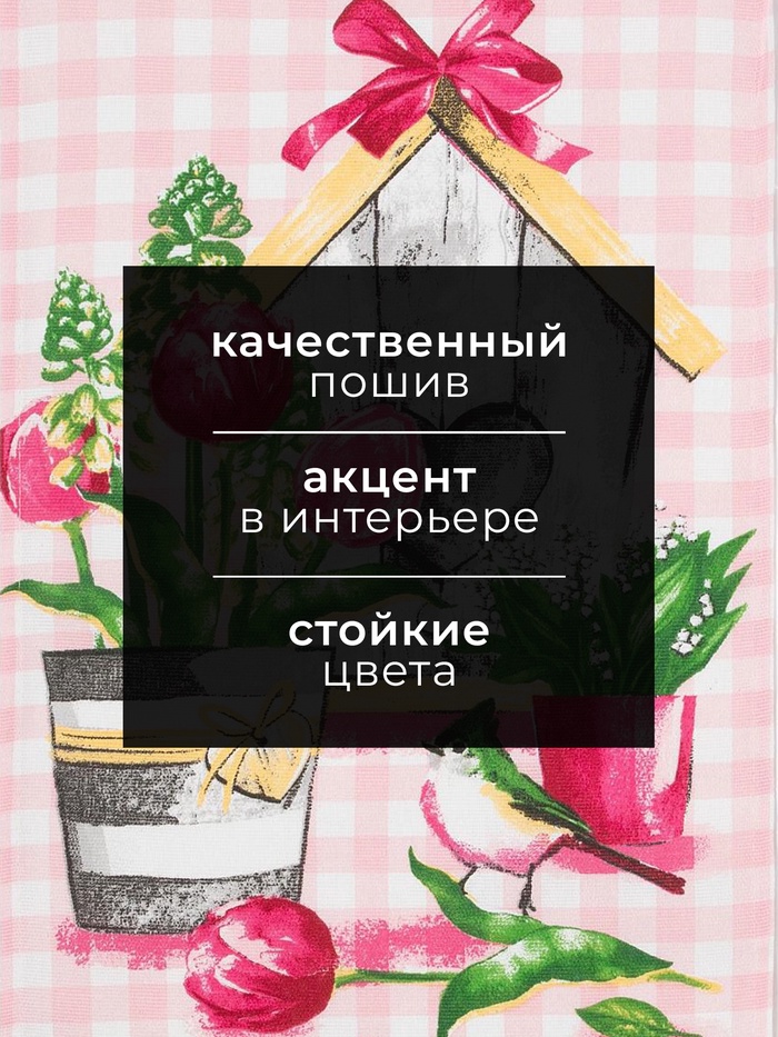 Это кухонное полотенце — тёплый знак внимания для самой заботливой хозяйки. Плотный хлопок с рисунком в цветочно-растительной тематике создаёт весеннее настроение на кухне в любой день года. Полотно «рогожка» приятно на ощупь и отлично впитывает влагу.