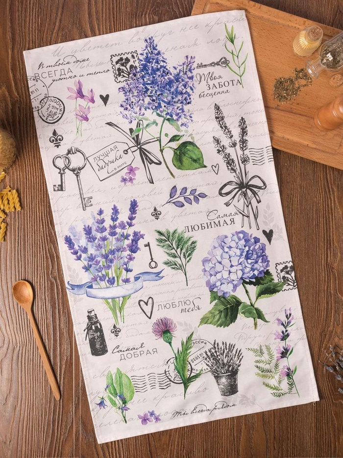 Это кухонное полотенце — тёплый привет из детства, воплощённый в практичной вещи для дома. Его цветочно-растительный рисунок в нежных сиреневых тонах наполнит кухню уютом и светлым настроением, напоминая о заботе и душевном тепле. Идеальный вариант для подарка на 8 Марта или просто как знак внимания самой лучшей бабушке, маме или близкому человеку.