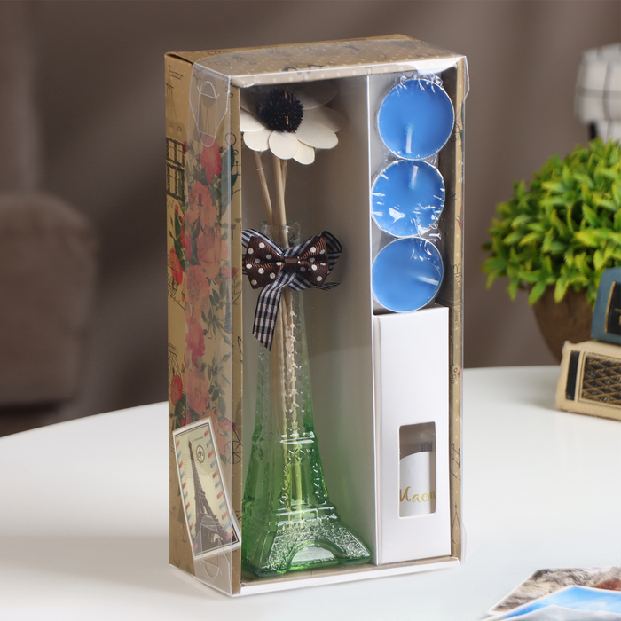 Ощутите волшебство Парижа прямо у себя дома с нашим уникальным набором в стиле Эйфелевой башни. Этот диффузор, выполненный в форме изящного символа Франции, не только наполнит ваш дом уютом, но и придаст ему неповторимый шарм. В комплекте с диффузором вы найдете чайные свечи, создающие приглушенное освещение и добавляющие нотки романтики в атмосферу, а также аромамасло, которое наполнит помещение нежным, умиротворяющим ароматом. Разгрузите свой день и погрузитесь в атмосферу спокойствия и расслабления с нашим набором, который привнесет в вашу жизнь частичку волшебства Парижа.