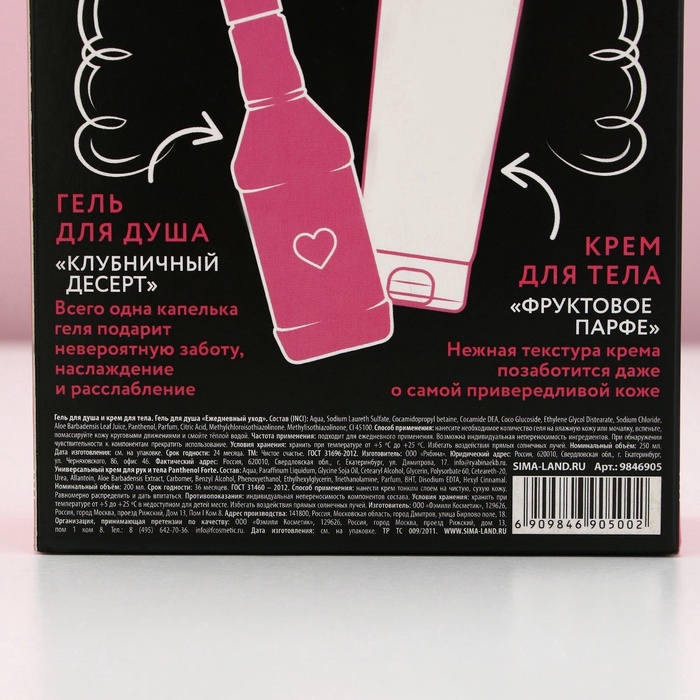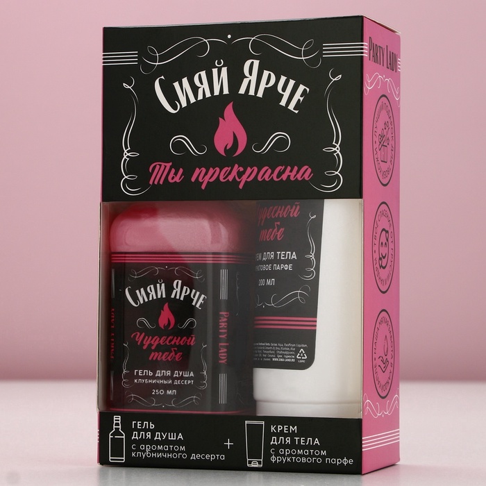 - Составляющие набора: Крем для тела, Гель для душа