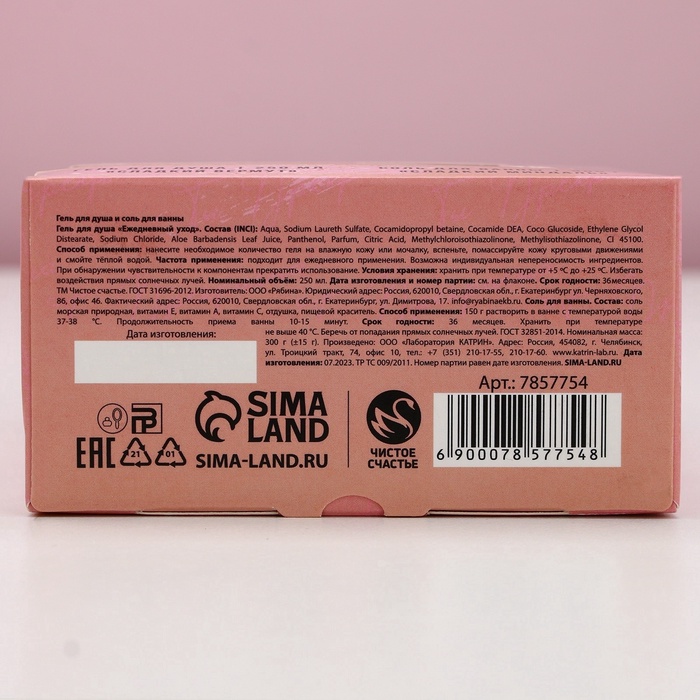 - Составляющие набора: Гель для душа, Соль для ванны