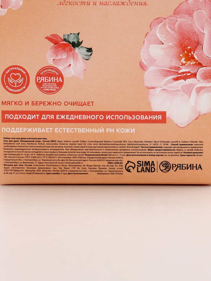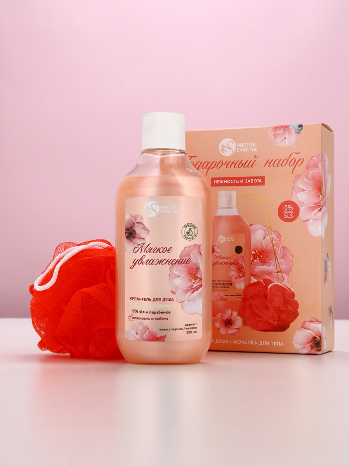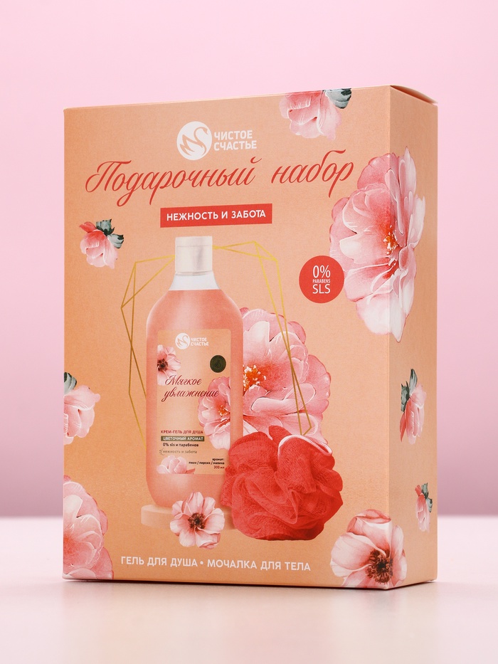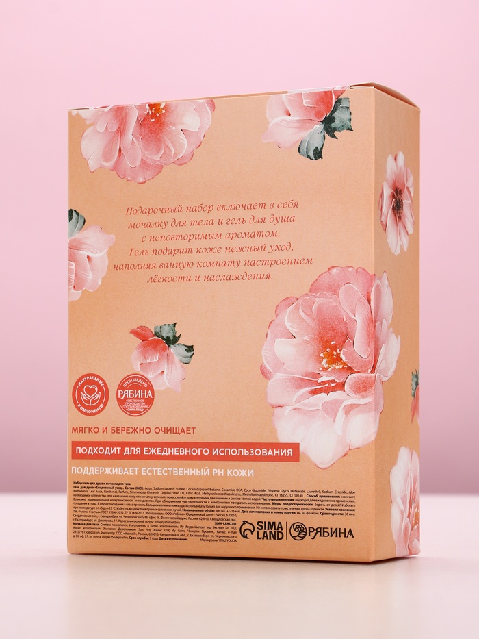 - Составляющие набора: Мочалка, Гель для душа