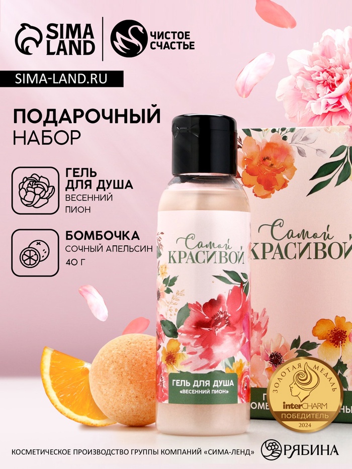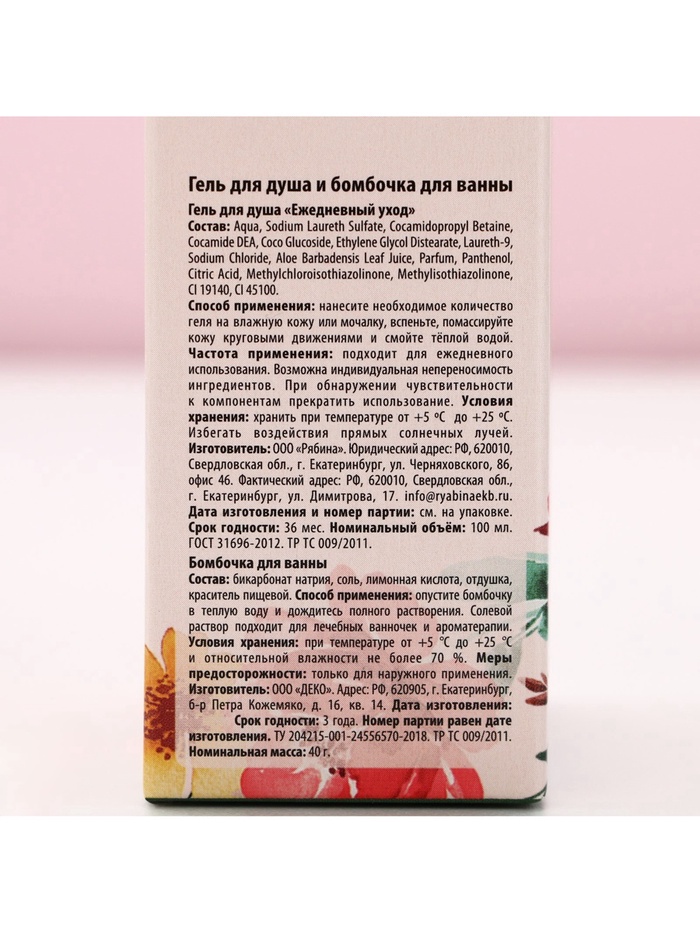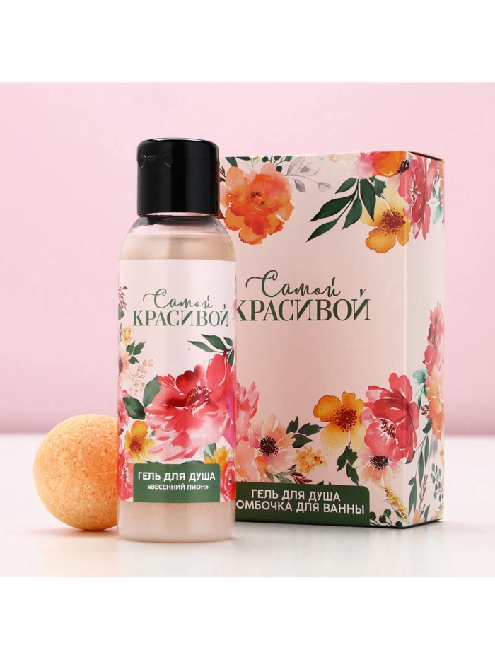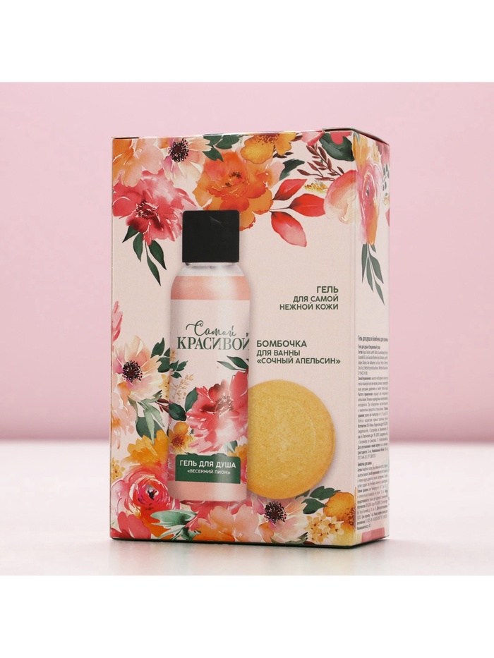 - Составляющие набора: Бомбочка для ванн, Гель для душа