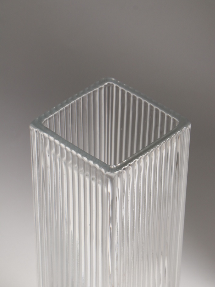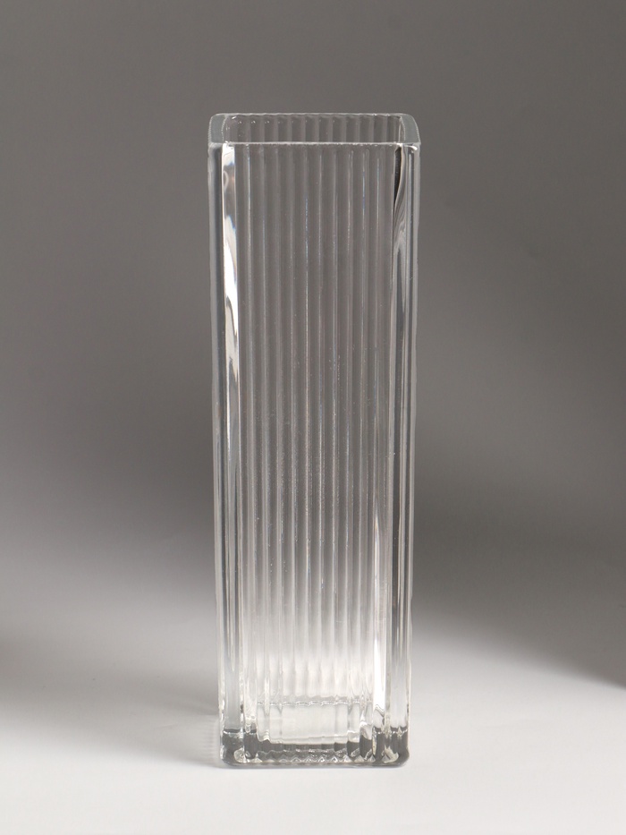 Чистая геометрия для ваших цветов. Стеклянная ваза «Бритт» с полосами — это настольная ваза, где строгий дизайн встречается с воздушной легкостью. Её прозрачные стенки, украшенные рельефными вертикальными линиями, создают изящную игру света и тени, не отвлекая внимание от главного — вашей цветочной композиции.