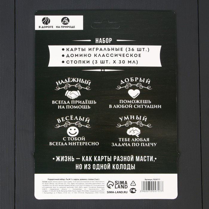 - Составляющие набора: Домино, Рюмки (стопки), Игральные карты