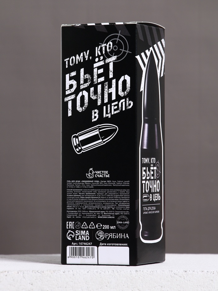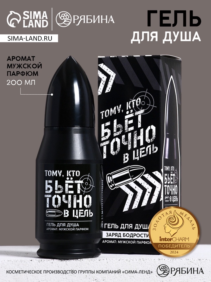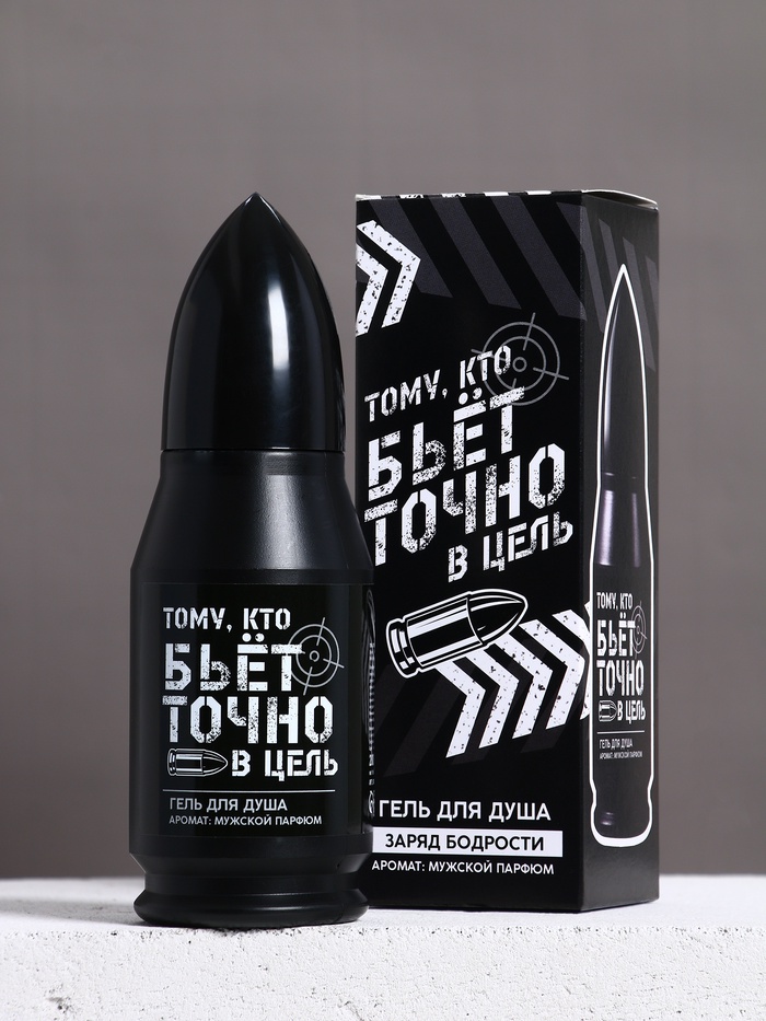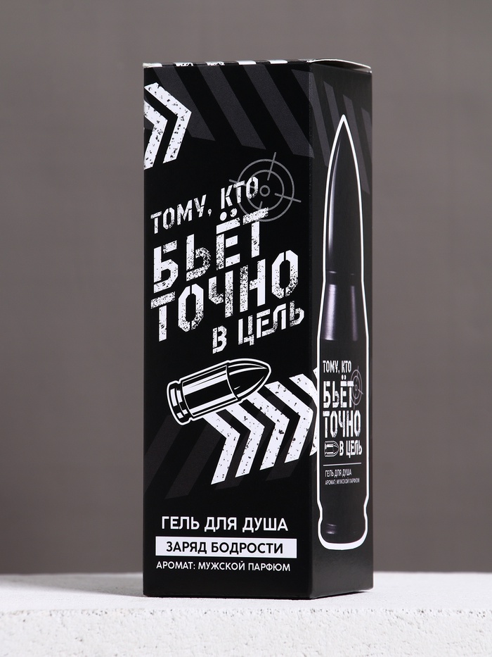 Гель для душа во флаконе пуля в коробке «Тому, кто бьёт в цель», 200 мл, аромат мужской парфюм