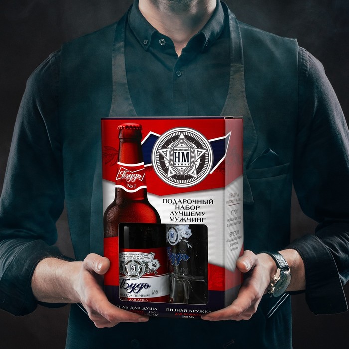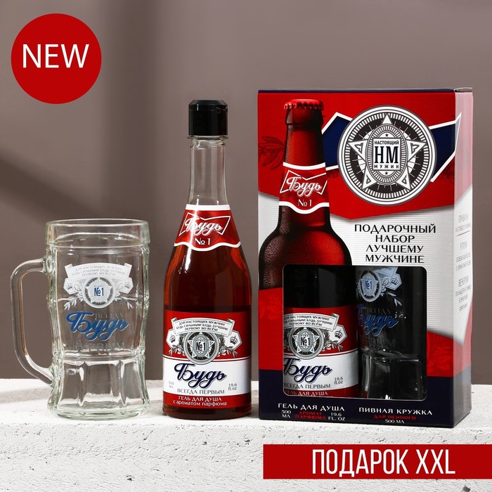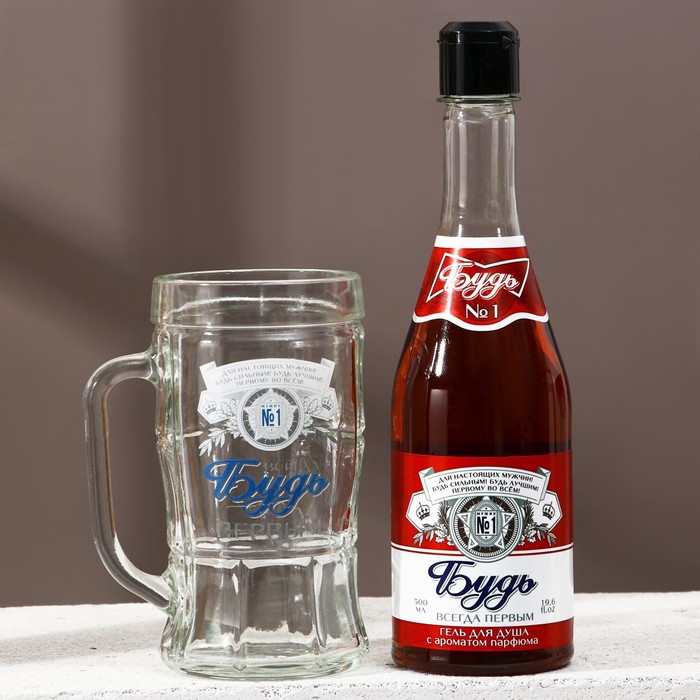 Подарочный набор ЧИСТОЕ СЧАСТЬЕ «Будь!»: гель для душа пиво 500 мл и пивная кружка 500 мл