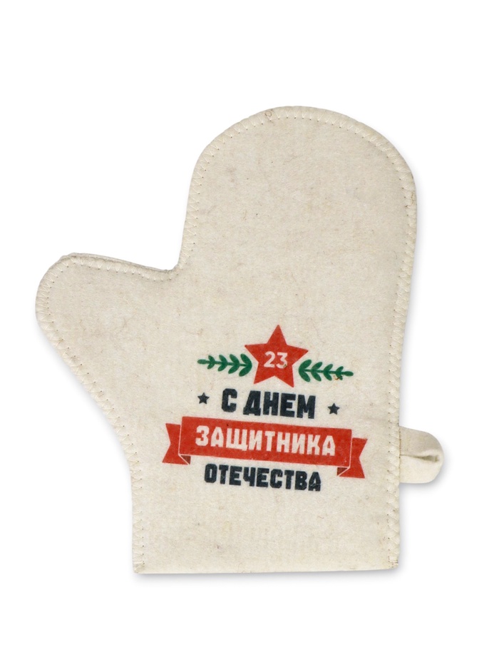 Банная рукавица «С Днём защитника Отечества» из шерсти и полиэфира — практичная защита для рук в парной. Она ограждает кожу от ожогов, упрощая работу с веником и нагретыми поверхностями.