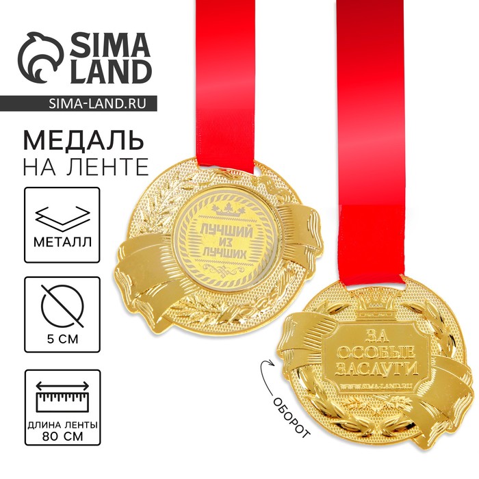 Медаль «Лучший из лучших», d=5 см — достойный сувенир для торжественного случая поможет ярко и необычно поздравить близкого человека и сохранит приятные воспоминания о празднике. Поблагодарите его за все те лучшие качества, которыми он обладает, таким нетривиальным способом.