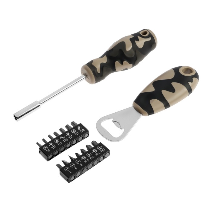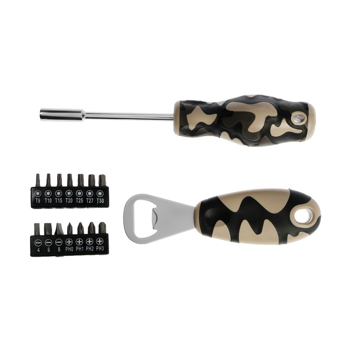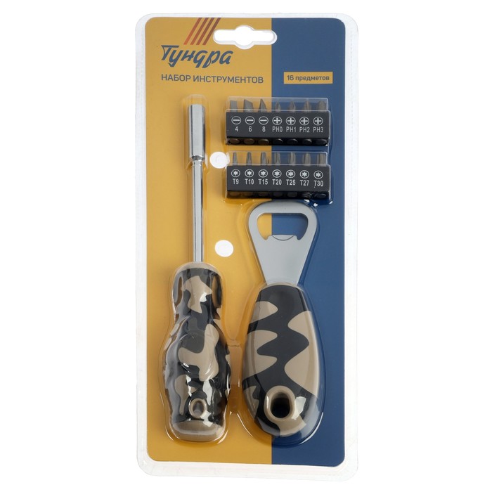 Набор инструментов ТУНДРА «23 ФЕВРАЛЯ», открывашка, отвертка с битами, 16 предметов