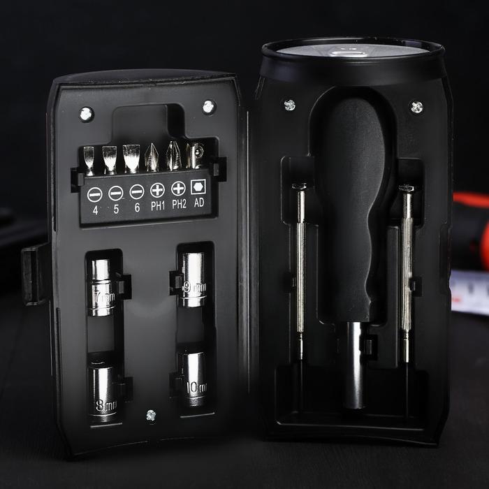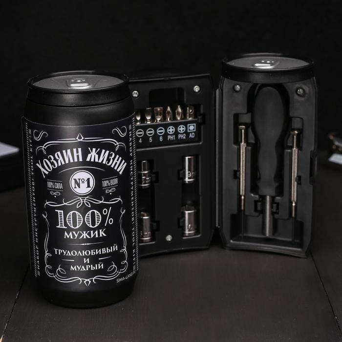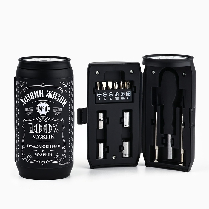Подарочный набор в банке состоит из 13 предметов, каждый из которых будет полезен и надежен в тысячах жизненных ситуациях: при ремонте автомобиля или бытовой техники, при сантехнических работах в квартире или на даче и так далее. Для удобства работы данными приспособлениями предусмотрена удобная в обхвате рукоятка, повторяющая форму ладони.