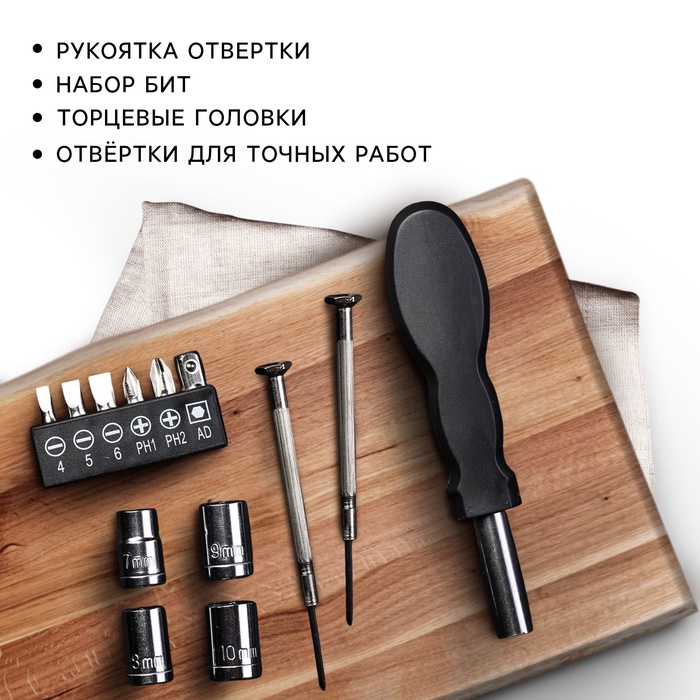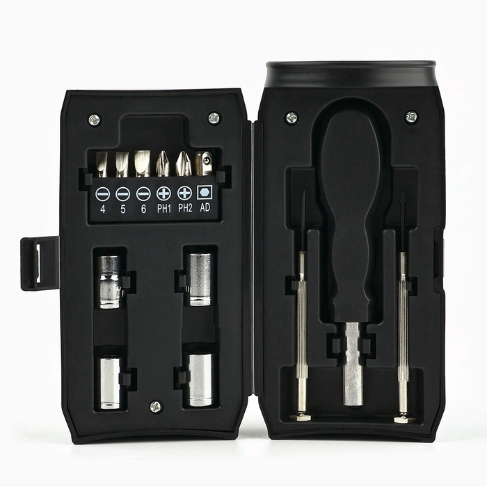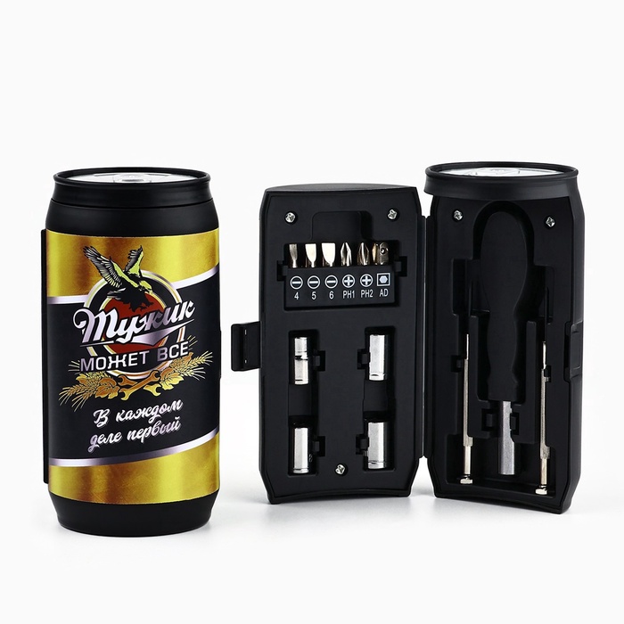 Подарочный набор в банке состоит из 13 предметов, каждый из которых будет полезен и надежен в тысячах жизненных ситуациях: при ремонте автомобиля или бытовой техники, при сантехнических работах в квартире или на даче и так далее. Для удобства работы данными приспособлениями предусмотрена удобная в обхвате рукоятка, повторяющая форму ладони.
