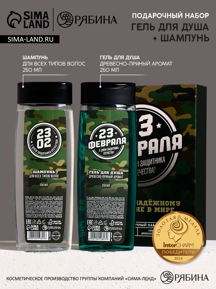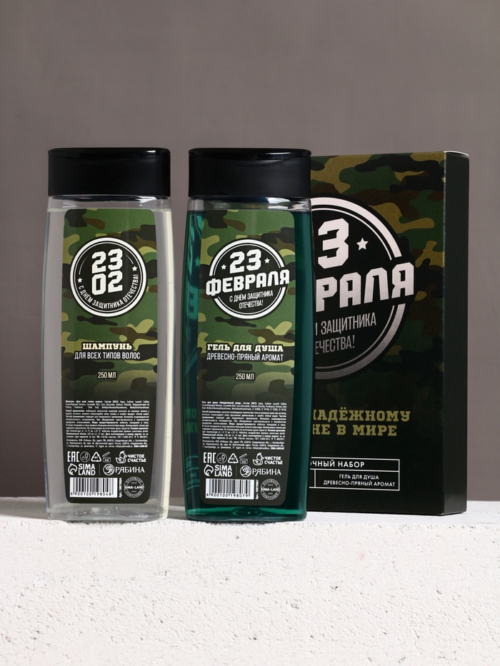 Подарочный набор «С 23 Февраля!»: гель для душа и шампунь для волос, 2×200 мл, HARD LINE