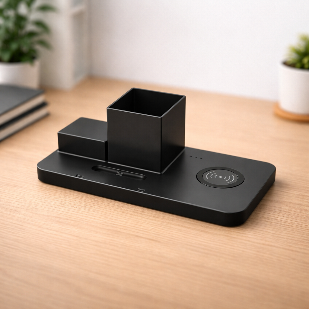 Настольный органайзер Medow c беспроводной зарядкой 15W, черный