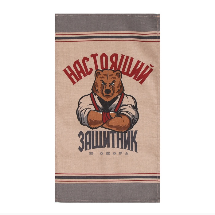 - Сдержанный мужской дизайн делает полотенце уместным подарком к 23 Февраля.