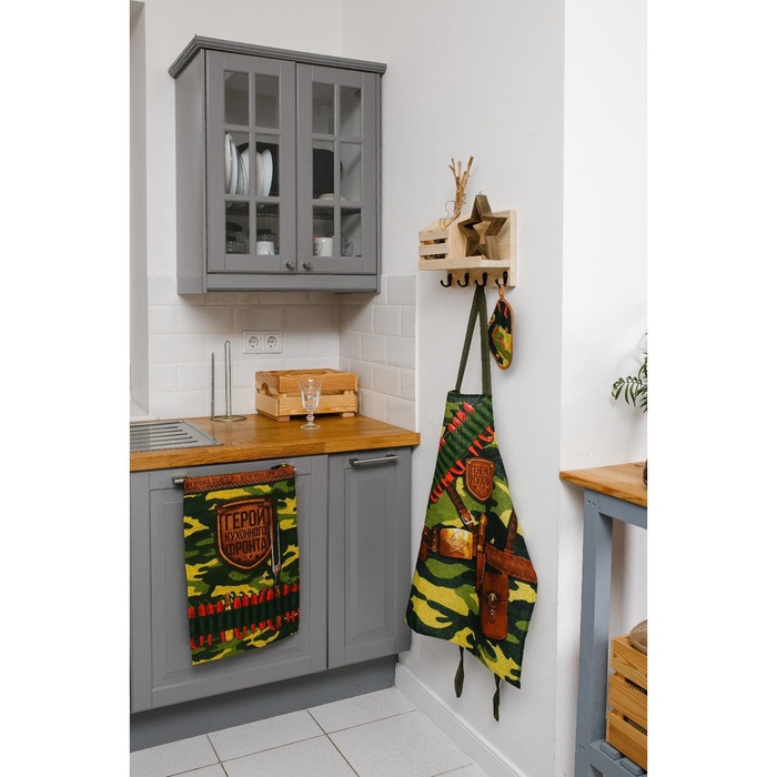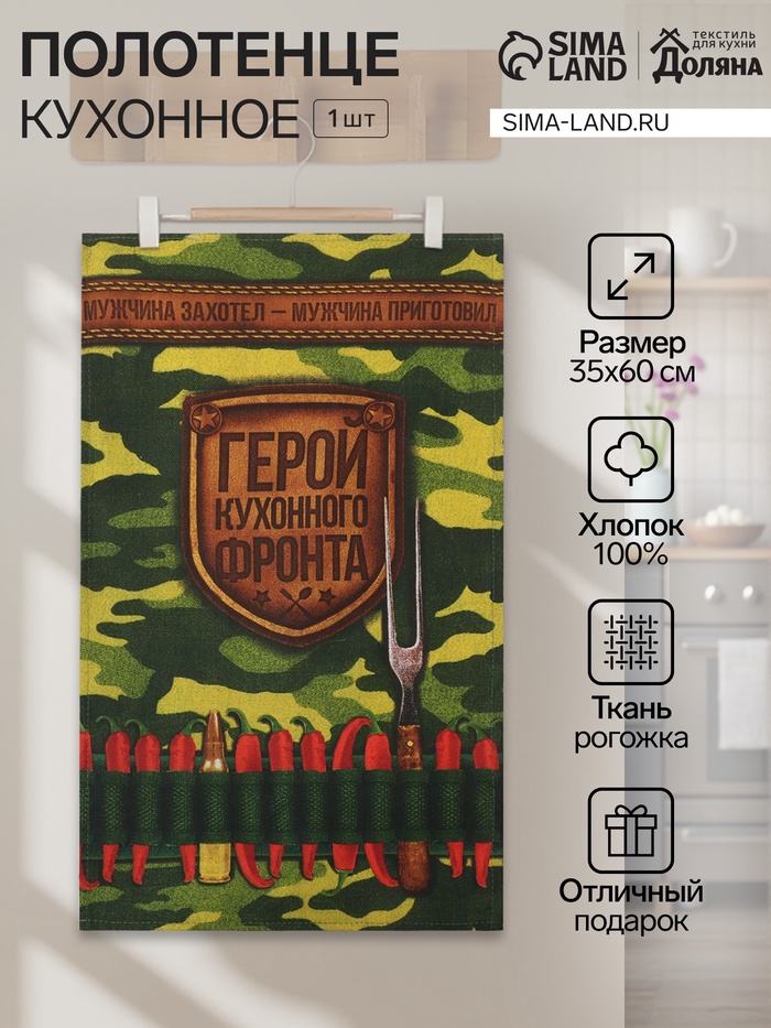 Это кухонное полотенце для тех, кто ценит порядок и надёжность в каждой детали. Плотная хлопковая рогожка с камуфляжным принтом справляется с любыми задачами — от вытирания посуды до защиты рук от горячего. Его фактура быстро впитывает влагу, а классический прямоугольный крой 35 на 60 см делает полотенце универсальным помощником.