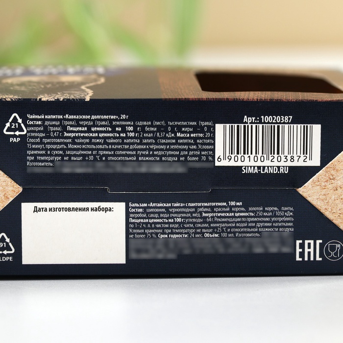 - Составляющие набора: Чай, Бальзам (настойка), Варенье