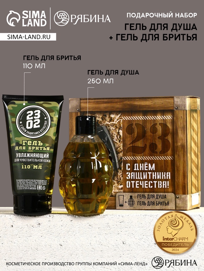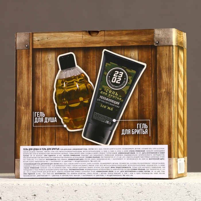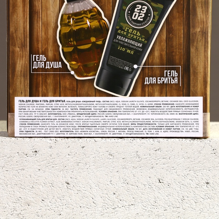 Подарочный набор косметики на 23 февраля «Сильному духом», гель для душа 250 мл и гель для бритья 110 мл, HARD LINE