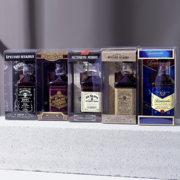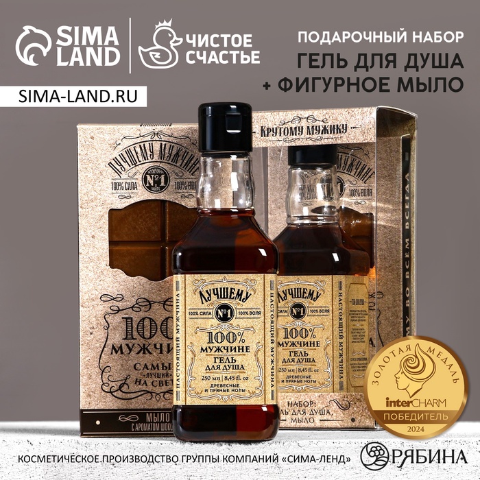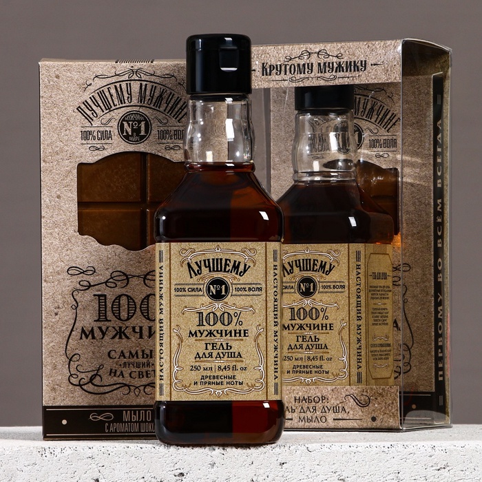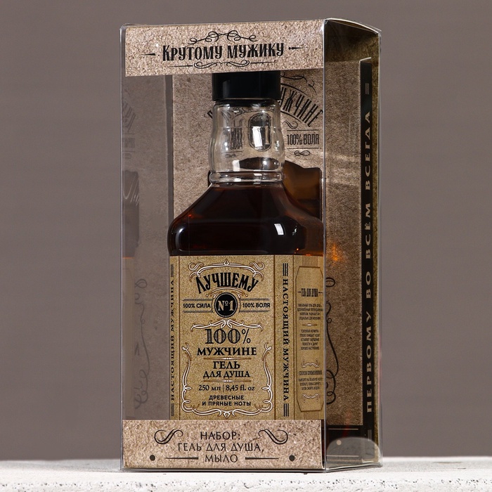 Подарочный набор «Крутому мужику»: гель для душа виски 250 мл и мыло для рук 80 г, Чистое счастье