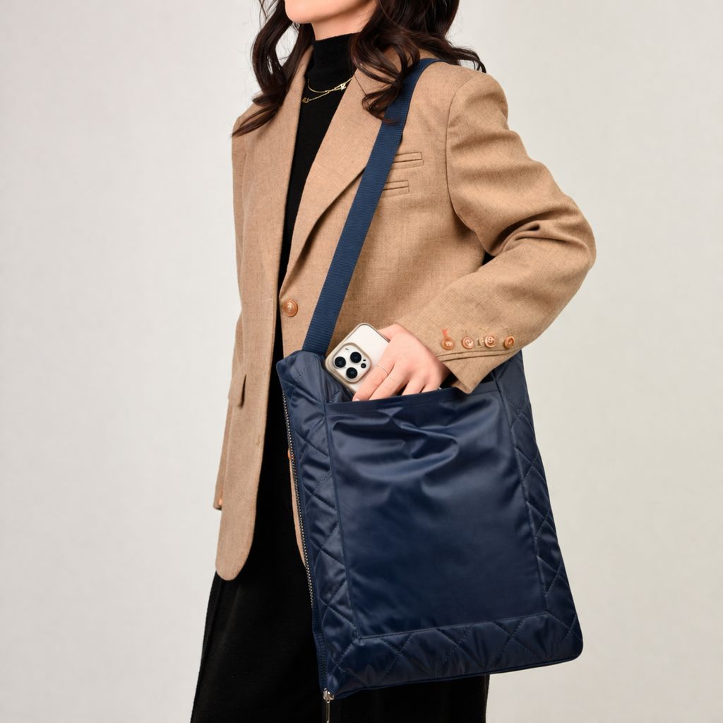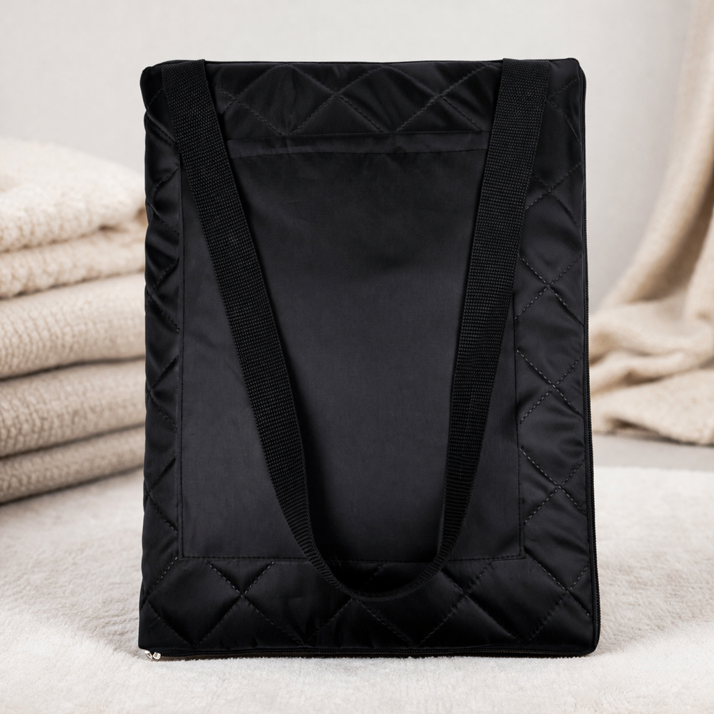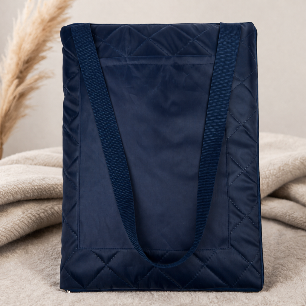 Застёжка-молния позволяет быстро сложить плед, превращая его в удобную сумку с плечевым ремнём и вместительным карманом для аксессуаров.