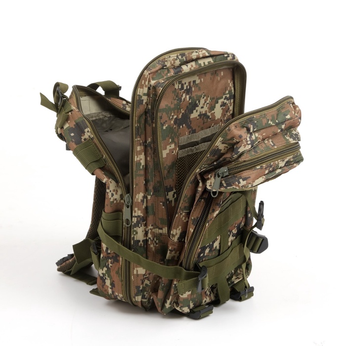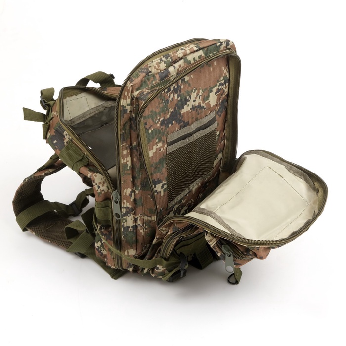 Многофункциональный рюкзак изготовлен из специальной износостойкой ткани, для самого широкого применения. Выполнен из влагостойкого материала - ткани оксфорд. Сумка, рюкзак идеально подходит для охоты, рыбалки, туризма и активного отдыха. Рюкзак камуфляжный армейский, тактический оснащен эргономичными лямками и системой MOLLE для навески дополнительного снаряжения. Мягкая спинка обеспечит комфорт в походных условиях и снизит нагрузку при переноске тяжестей по неровной горной местности.