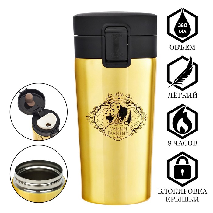 Термокружка является незаменимым атрибутом для всех любителей активного отдыха, её удобно брать с собой в поездку на автомобиле и мини путешествия на природу.